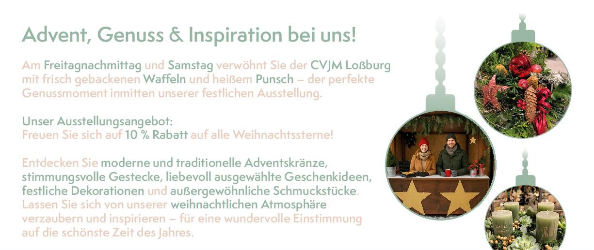 Tauchen Sie ein in eine Welt voller Lichterglanz, Tannenduft und festlicher Inspiration. Bei uns hat die Adventszeit begonnen – und wir möchten Sie herzlich einladen, die besondere Stimmung in unserer Gärtnerei zu erleben.